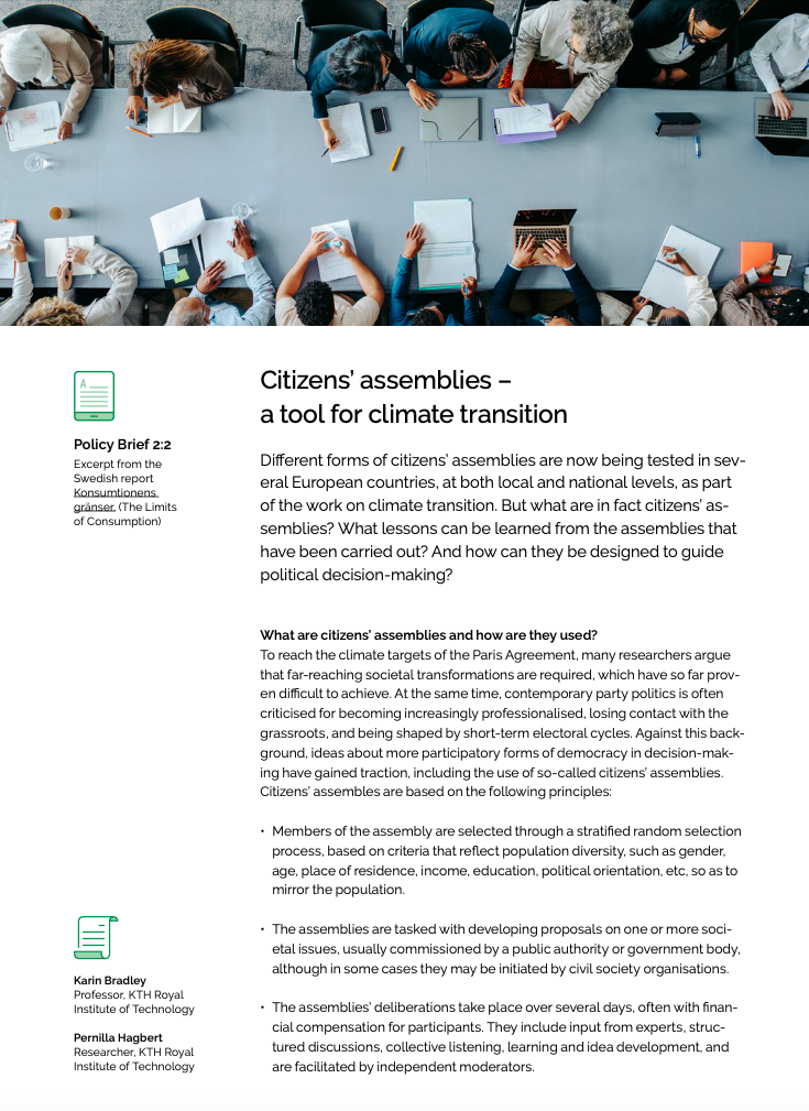 Policy Briefs Citizens’ assemblies – A Tool for Climate Transition Business Models to Mainstream Sustainable Consumption Practices